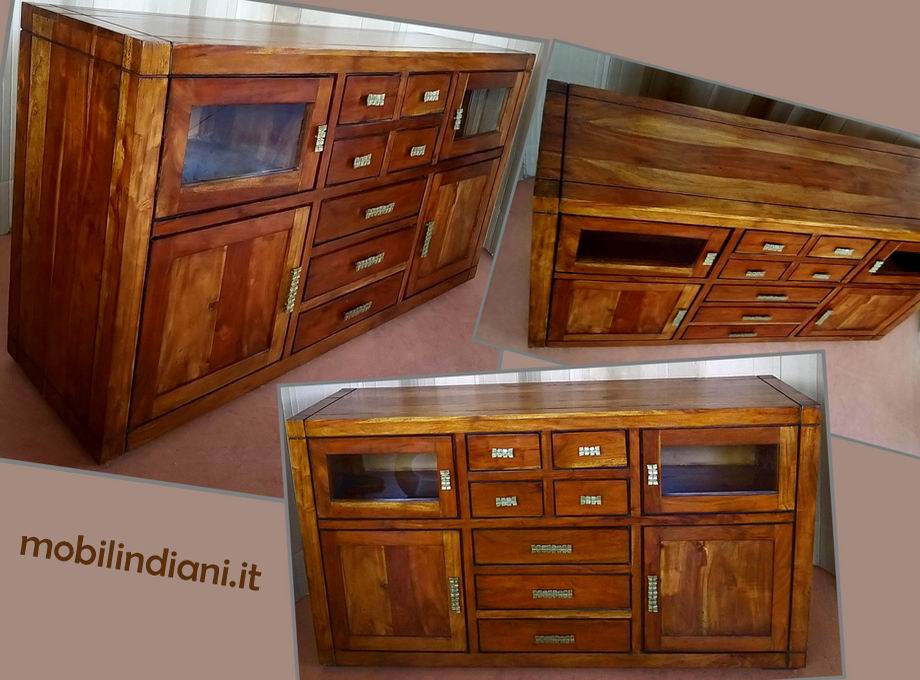 Disponibilità 1Elegante credenza etnica con 4 ante + 7 cassetti. Maniglie gioiello in metallo. Legno massello sheesham (noce) Cm.161x45 h.90 Paese India PER INFO COSTI SPEDIZIONE CHIEDI su WhatsApp o via mail: info@mobilindiani.it