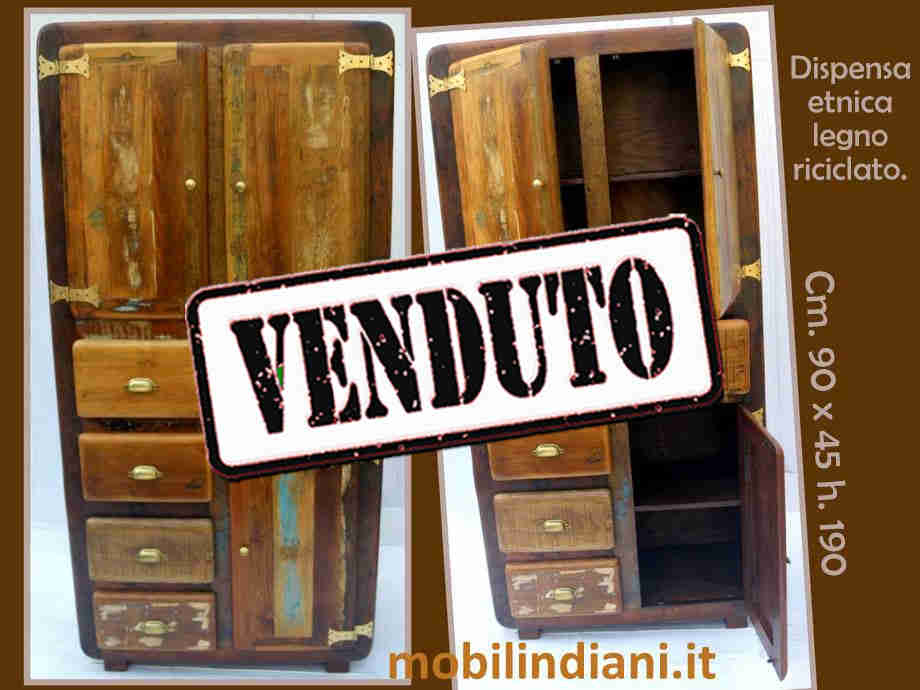 Dispensa etnica, ante con cerniere a vista + 5 cassetti. Legno di recupero sheesham (noce) Nuova vita al legno, lunga vita agli alberi! Cm.90x45 h.190 Paese India