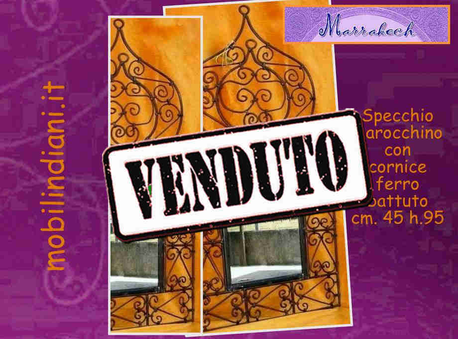 Disponibilità 0Specchio marocchino con cornice in ferro battuto colore brunito. Mis. con cornice: cm.45 h.95 - Mis. solo specchio: cm.22 h.39 Paese Marrakech, Marocco
