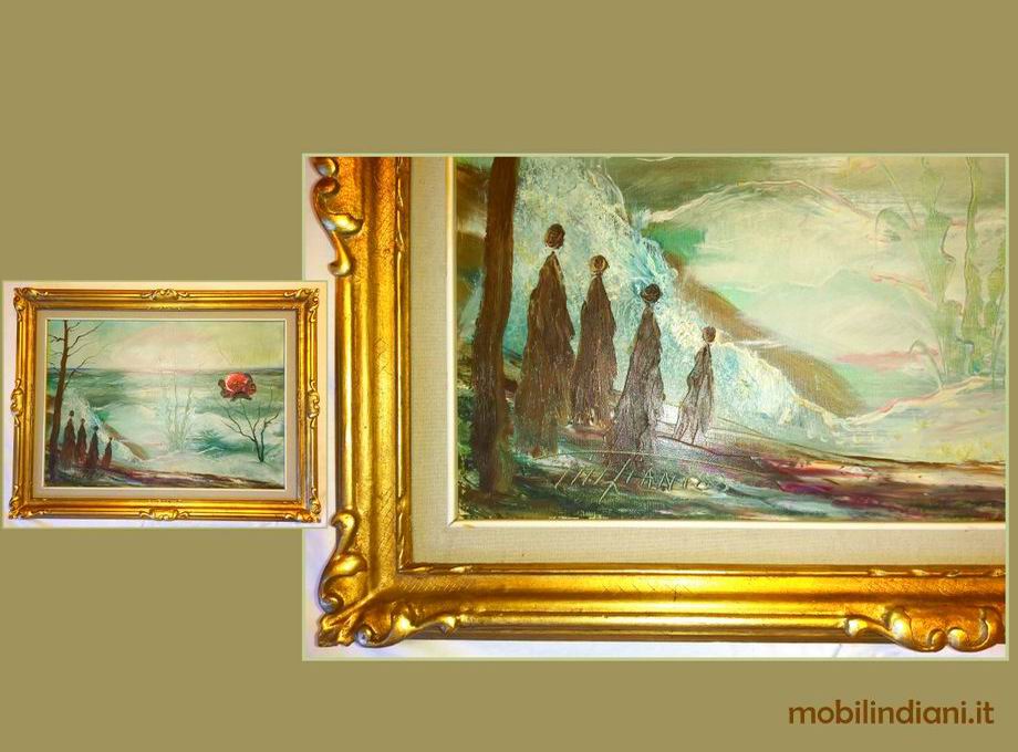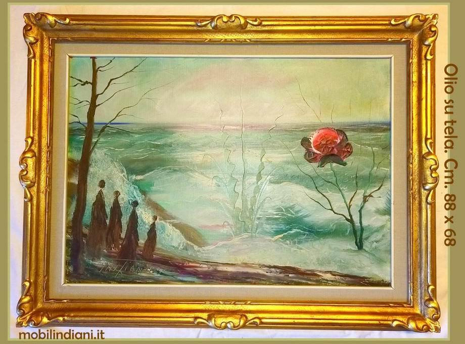 Disponibilità 1Dipinto olio su tela. Cornice in legno lavorato con passe-partout. SENZA VETRO. Dimensioni cm. 88x68 - Anno 1983 COSTO TRASPORTO €. 19,95 Iva Inclusa. Per costi trasporto Isole, chiedi info su WhatsApp o mail: info@mobilindiani.it