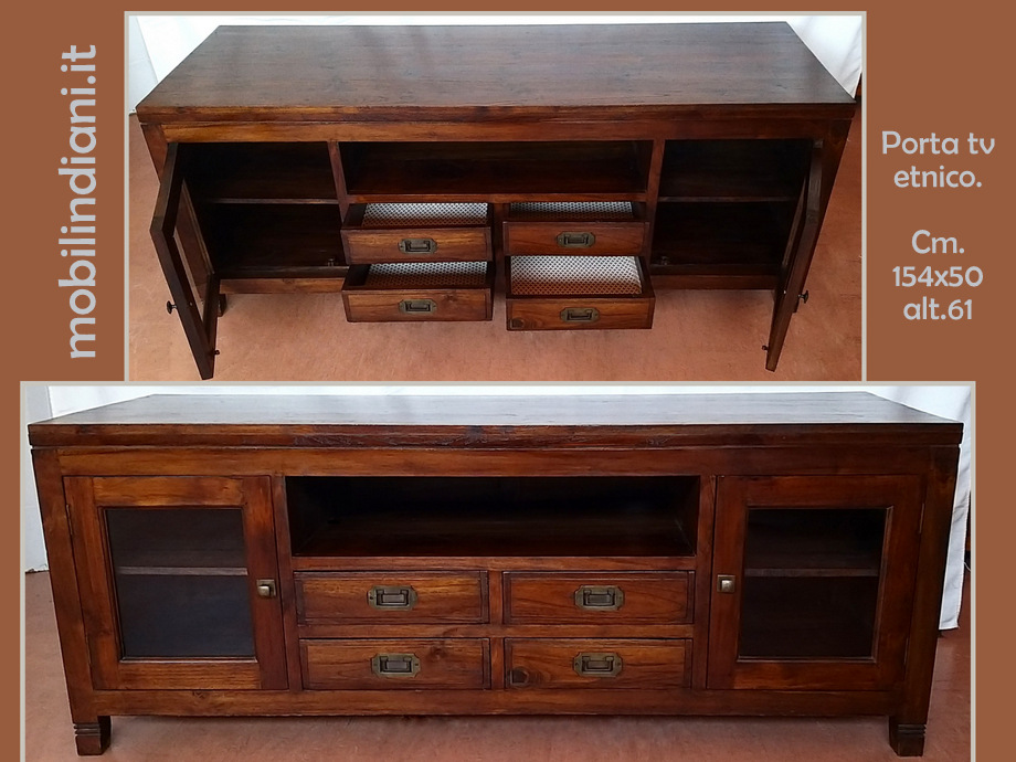 Portatv etnico con ante, cassetti. Cm.154x50 h.61 Indonesia
